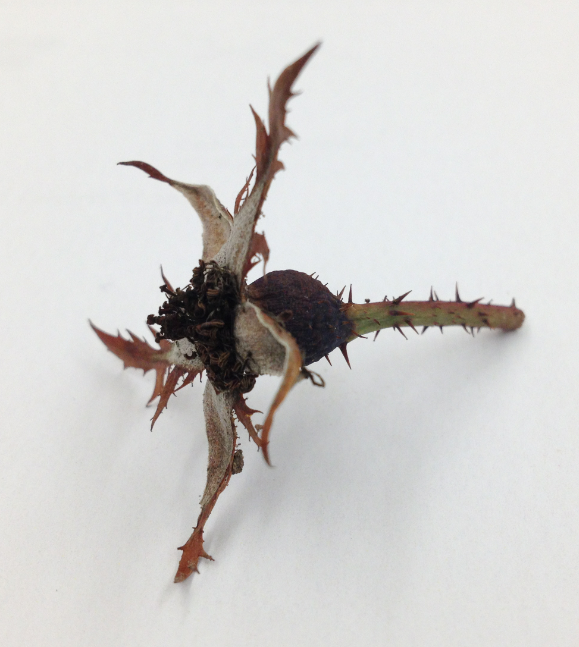 Angiosperm from a bush in the middle of our transect: xylem/phloem to transport nutrients and water; thorns/spiky petals; reproductive parts in middle of flower (anther/stigma); dicot (five petals)