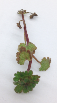 Angiosperm (cloverlike plant)- found alongside the bushes in the middle of our transect bordering with the grass: netted venation; green/purple leaves- soft, almost moss like; thick, waxy leaves; broad network of roots; dicot