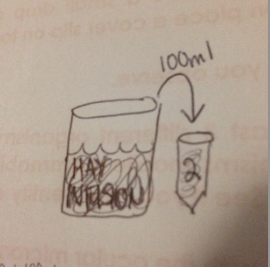 Swirl the Hay Infusion and take 100 microliters from the mix and add it to tube 2, as shown by "Figure 3". Swirl to mix well.