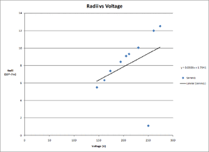 - We did this number of different 5 times while varying the voltage and current and getting different radii for each change