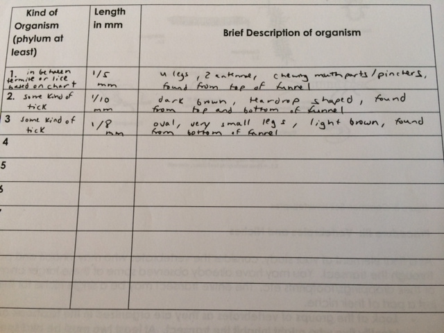 All of the organisms we measured were less than a mm. Arthropods are supposed to be most common in leaf litter.