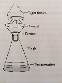 The funnel, light, and flask were set up as seen in the diagram below. The leaf litter sample was placed inside the funnel and covered with foil.