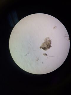 General observations: The hay infusion culture has a strong, pungent, and unpleasant smell. The dirt has settled to the bottom of the jar and some of it has acquired a gooey texture. There is a filmy layer on the top of the liquid and the plant matter has begun breaking down.