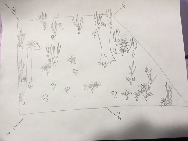 Figure 2. This figure shows all of the prominent landmarks in the transect and the letters they are labeled with on the aerial view diagram.