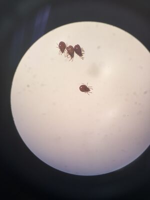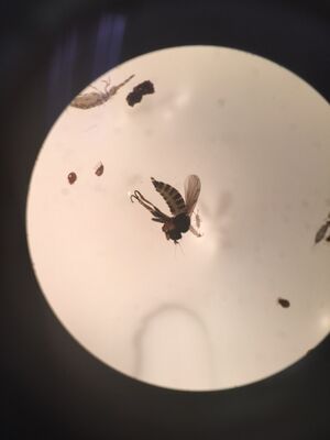 1. The insects from the Burlese funnel were collected and placed in a petri dish. This dish was then viewed under the dissecting microscope.