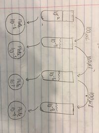 5. Next, gram stains were made for each of the four colonies. A sample from each colony was placed on a slide with some water and then allowed to dry a bit. Then the bacteria were fixed onto the slide by holding the slide over heat. Then, the slide was covered in crystal violent for 1 minute, washed with water the covered with iodine mordant for 1 minute, then rinsed with water. Next it was flooded with the decolorizer and then rinsed with water. Finally, the smear was covered with safranin stain and the excess was washed off.