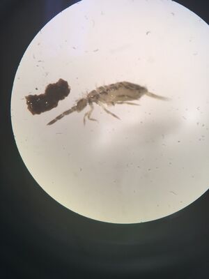 This organism has 6 legs and no wings. It was free-living i.e. it did not grow on other animals. It did not have appendages on its abdomen and there was a broad connection between the thorax and the abdomen. It had short antennae.