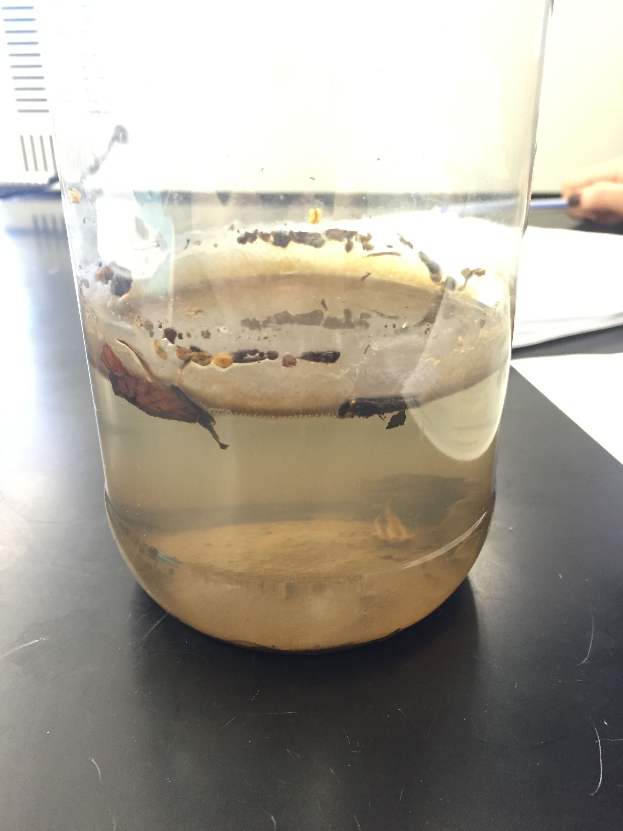 Data At the end of using the hay infusions, the specific hay infusion for transect 4 had retained its film on the top, but the film had gotten more opaque and slightly thicker. The smell of the hay infusion had remained the same, a very swampy smell.