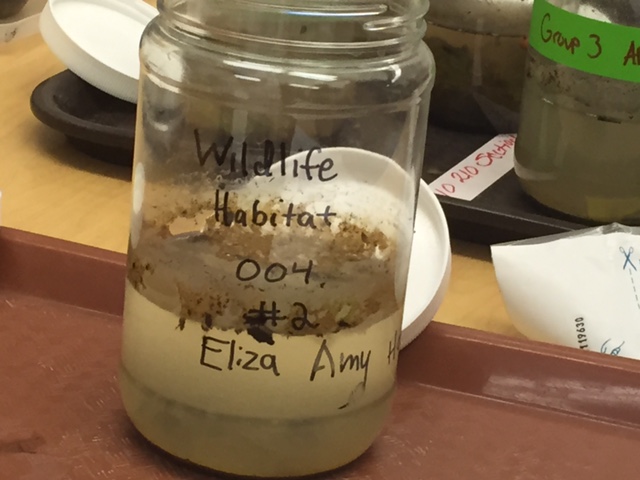 The Hay Infusion smelled like musty dirt and rotting sewage. A film had grown on the surface, with most of the dirt and plant matter settling to the bottom. A picture of the jar is below.
