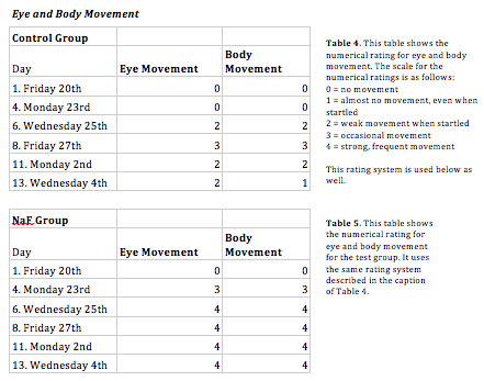 They hypothesis of the experiment was that zebrafish in the NaF group would be stunted and have weak movement and slow startle responses.