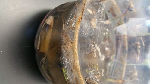 Before beginning the procedures of this lab, a hypothesis was made on how the Hay Infusion Culture changed since the previous week. It was hypothesized that the appearance and smell of the culture would be different than last week due to the fluctuations in population sizes of all the present organisms – some fungi may be more present than it was last week, etc. It was then observed that it was much darker, more mold was present, water had evaporated, it smelled more like rotten eggs this week, a lot of paste-like residue was lining the sides of the jar, and cloudy auras encapsulated floating objects, like grass blades.