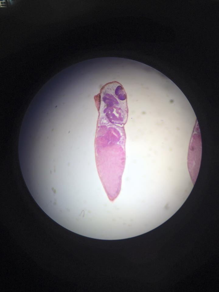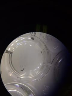In today's lab we checked up on our zebrafish for a third time. We came in on Friday and Monday to document any growth or embryos that had died. The control plate had 13 live embryos, all of which were very active swimmers with no deformities. They also measured to be larger than the fish in the treatment wells. The embryos in the treatment wells only had 4 living embryos, and 5 dead, which were fixed in paraformaldehyde. 2of the embryos were very deformed, as shown in the image below. The embryos were not very active, and moved very slowly. They also measured to be smaller than the control embryos.