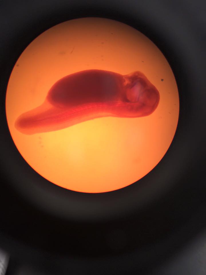 Materials and Methods: In the first part of this lab, students looked at prepared slides of the stages of embryology for starfish, chick and frog embryos. We were instructed tio make observations and then fill out a table with results regarding the stages and characteristics of each stage, as seen in results section. In order to prepare and set up the zebrafish experiments, students prepared two different plates, one labelled control and one labelled treatment. The control dish received 2 microliters of H2O in each well, whereas the treatment plates received 2 microliters of the chosen variable, which, in our case, was nicotine. A zebrafish embryo was then added to each well with a transfer pipette.