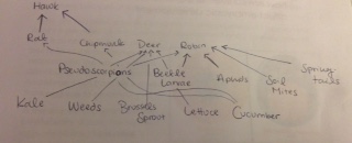 Procedure 4: This final part of the lab - and a culmination of the study - had students consider the vertebrates that pass through the transect, whether those vertebrates be a niche for the organisms or simply part of the niche. Students identified five of these organisms, determined their classification, and considered the biotic and abiotic characteristics of their particular transects that would benefit each species. Then, a food web was created based on every organism observed in the transect.