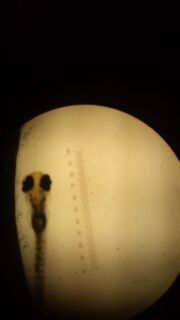 | 7 | Control | 9 | 0 | 5 | 72 hour stage | ~1 mm | Long tail, dark eye pigmentation, fins have developed for the most part, eyes are moving, little fins are developing and moving near the fish's head, yolk absorbed, slightly protruding mouth, moving back and fourth (using fins to move), dark tail pigmentation, tail is thick |