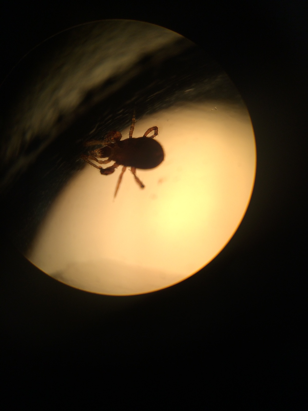 After the Berlese Funnel was incubated for four days, it was taken down. The liquid was poured into two petri dishes and observed. then e insects visible by eye was observed under the microscope.
