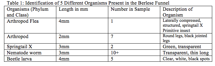 Part 3: Analyzing the Invertebrates collected with the Berlese Funnel.