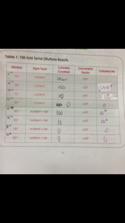 Table 1:100-fold serial dilutions results