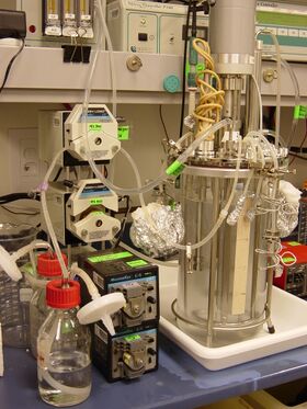 Becasue Fermentation strategy using define medium (Fermenter #3) includs Fed-Batch with Glycerol. If Glycerol is fed in growth-limiting rate, it increases biomass and also primes methanol-utilization pathway enzymes before induction. Feed rate and feed time will depend on the desired cell density and the end of the glycerol fed batch phase, which may vary from 150 to 450 WCW/L, and should be optimized based on teh production time course. Reference: Pichia Protocols, 2nd edition, p47 *Sung-Hye Grieco 19:12, 13 August 2010 (EDT):