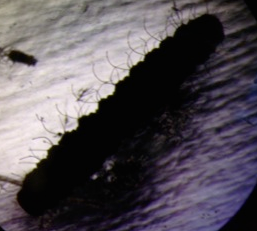 This sample came from transect #1. It had a segmented hairy body with many legs. It measured 3.5mm.