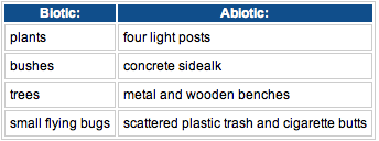 The American University campus is saturated with different varieties of ecosystems. This lab notebook entry, the first in a series of three, will present and discuss observations from transect #3. Through this transect, it will be possible to study the biology of communities. The biodiversity, or number and type of species that live in an area, will be analyzed (Bentley 2014). In addition, living (biotic) and nonliving (abiotic) elements will be examined (Bentley 2014). Each species in the community has a niche that is important to the status of the community.