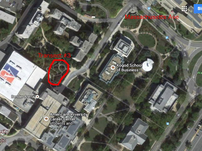 Figure 1: Map of Transect #3 Location on American University Campus
