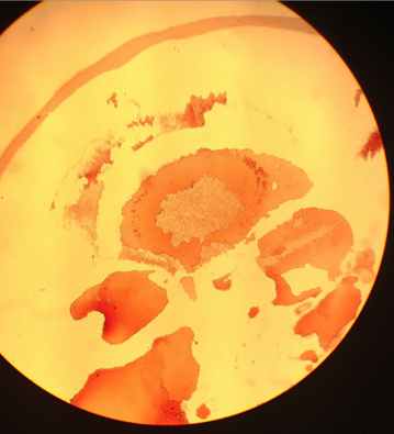 This dish was chosen for microscopy, gram staining, and PCR. The sample was taken from one of the larger yellow colonies.