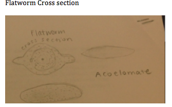 Specific steps preformed: The first procedure that we preformed today was to observe acoelomate, Planaria with the dissecting microscope. We are able to see the digestion of the planaria. We then looked at a nemotode and compared and contrasted the differences of an earthworm and a cross section of the earth worm. We then looked at live worms and saw that worms, in dirt, bended in a wave-like formation, slow moving or not moving at all. They also moved with their entire body. The next activity that we did was to look at our own invertebrates collected by our berlese funnel. We put the invertebrates into two differing petri dishes and looked at them under a dissecting microscope. We used a dichotomous key in order to identify each invertebrate. In order to become more familiar with invertebrates, we looked at many invertebrates in jars to determine which arthropods they belonged to. An example of these were a centipede, a crustceans, an arachnid, and a millipede. This really helped my understanding in knowing how to determine the species of each organism.