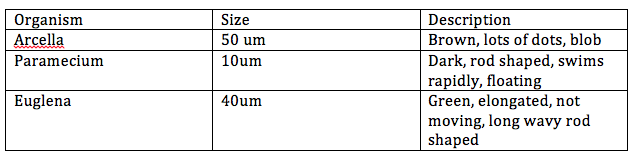 In order to get familiar with the dichotomous key, I prepared wet mounts of slides and looked at them under the microscope in order to get a better understanding of how to identify organisms. I did this two times with a KNOWN organism in order to assure that I understood how to work with the dichotomous key. I made observations on size, shape, motility, and characteristics in order to identify the organism . I then drew the organisms in my lab book.