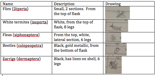 From this data, I saw that the beetles were the largest invertebrates than the others. I also saw that most of the bigger invertebrates were found from the bottom of the test tube when we poured out our invertebrates.