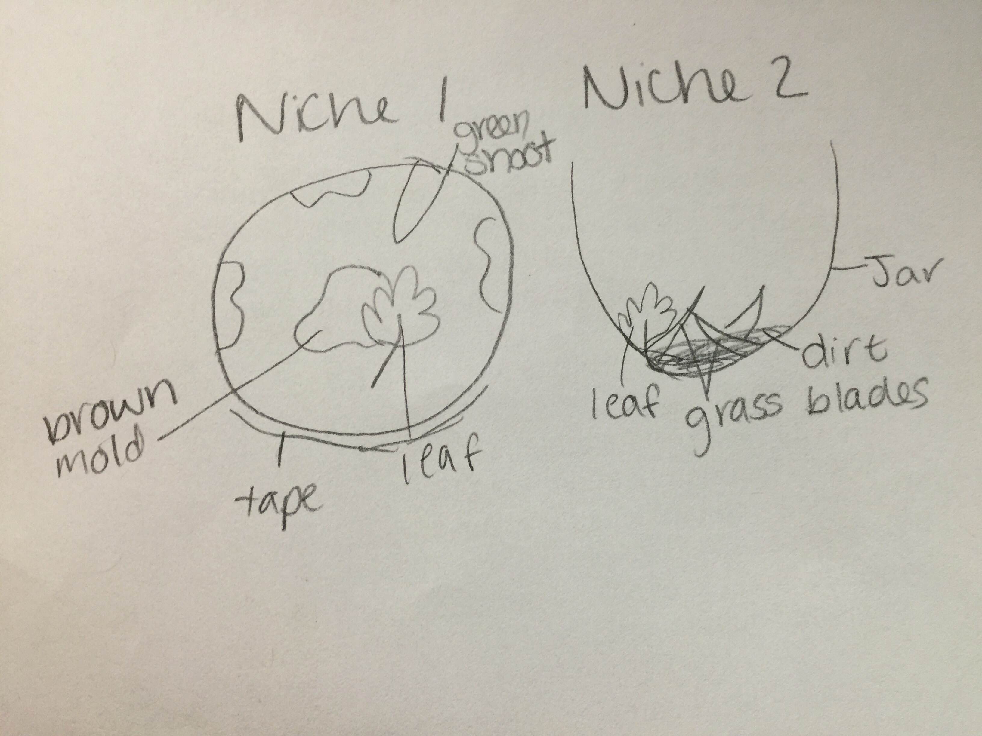Week two of lab consisted of observing the organisms present in the hay infusion. To make the hay infusion, we collected 10-12 grams of soil and other ground vegetation from transect 1, and put in a plastic jar with 500 mLs of deerpark water. Then, before mixing it together, dried milk was added. The jar was left open and sat out from week 1 until week 2. Upon initially observing the jar, a strong, foul odor was coming from the ecosystem inside. it smelled of rotten eggs and the water was murky yellow in color. Also there is brown mold and green shoots growing in niche 1 (the top of the jar). In niche 2, there was a dead leaf, dirt and grass blades.