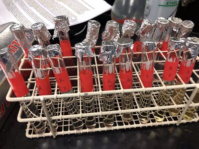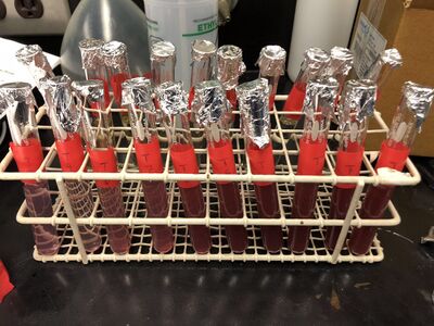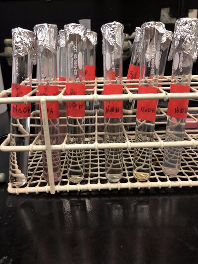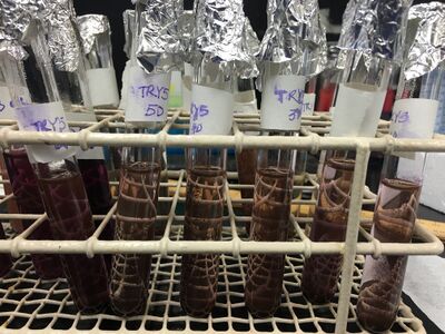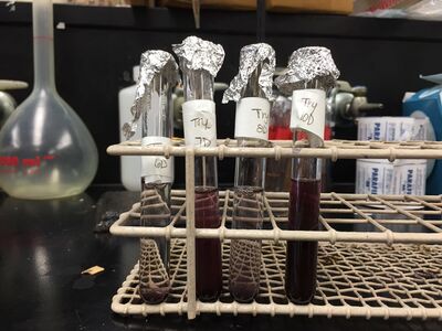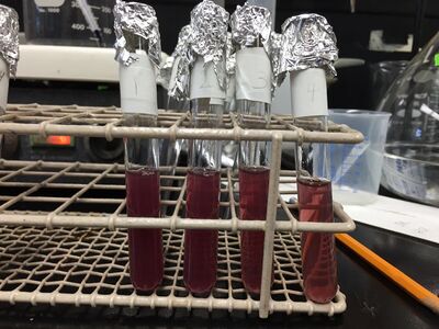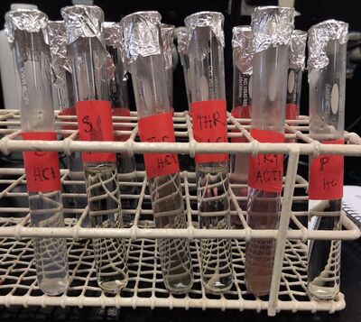 For this experiment, we used the water bath to heat Aspartic Acid solutions to determine the efficiency. Before putting Tryptophan samples in the oven, all the samples turned purple after adding NaOH to test tubes.