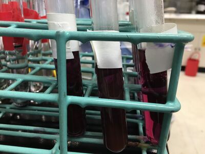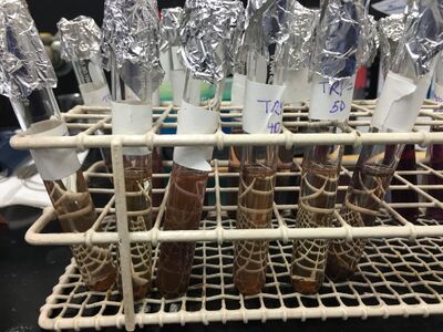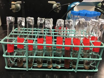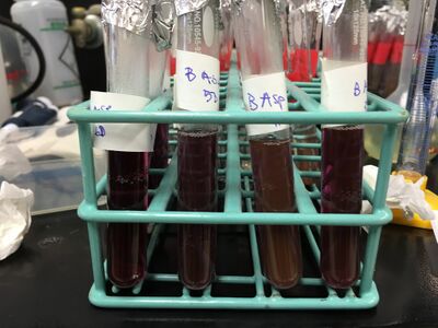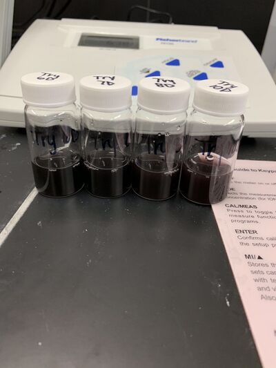 After taking all the solutions out of the oven, as we observed, most gold particles in the test tubes were crashed out. Therefore, we assumed that the oven's temperature was too high or the heating time was too long. For the next time, we need to adjust the temperature and heating time or put the stock solutions in the water bath. Additionally, we can also adjust different ratios of amino acids and gold chloride and values of pH of stock solutions to see if more gold nanoparticle can be produced.