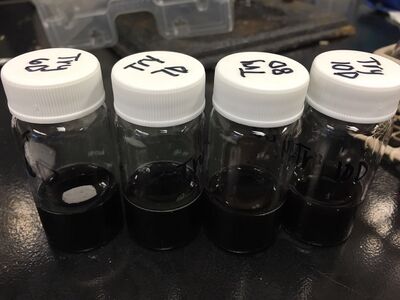 After finishing all the detections and adjustments, we went the P floor and cut the electrodes to do the preparation for the next week's SEC test. We put four electrodes with a length about 1cm of carbon fiber in each Tryptophan sample so that we can have enough carbon fiber coated with the gold nanoparticles to observe. As Sample 3 showed the highest absorbance, so we had one electrode placed in the bottle of Sample 3 for 24 hours as we assumed that 24 hours would be enough for such high concentrated sample. Additionally, Sample 4 was set as Sample 3 for 24 hours and Sample 1 & 2 were set for 48 hours.
