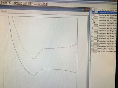 Tryptophan 6D sample: pH initial = 2.95 -- 8.76 after 80 drops of 1M NaOH solution