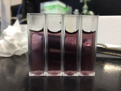At the beginning of the experiment, we used the UV monochromator to test the absorbances of these four samples and diluted them with five to one ratio. The results are shown in the image below.