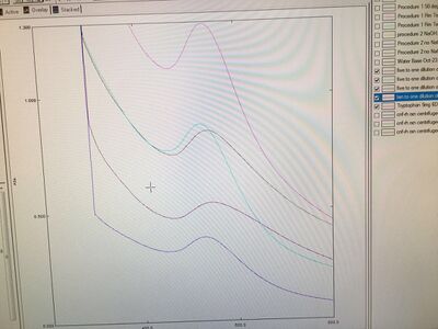 We tried to keep all the samples' pH values around 10 and the interesting thing is that the samples with more drops of NaOH needed much more NaOH drops to increase to the value around 10. Additionally, Tryptophan 5mg 6D and 8D samples became faded after adding NaOH. Therefore, we assumed that these two samples' gold nanoparticles became the fibers and the extreme basic environment might make these nanoparticles crashed out. Actually, in the process of measuring the pH values and titration, the pH meter's measurement didn't change. Therefore, we recalibrate the pH meter to do the measurement for one more time to make sure that the measurement is precise. However, the error caused by the equipment might lead to problems in many ways. After measuring the pH values, we used UV monochromator to measure the intensities of samples and the results showed very low absorbances of Tryptophan 5mg 6mg and 8D samples. For this time, Tryptophan 5mg 10D sample showed the normal and high peak at 580nm.