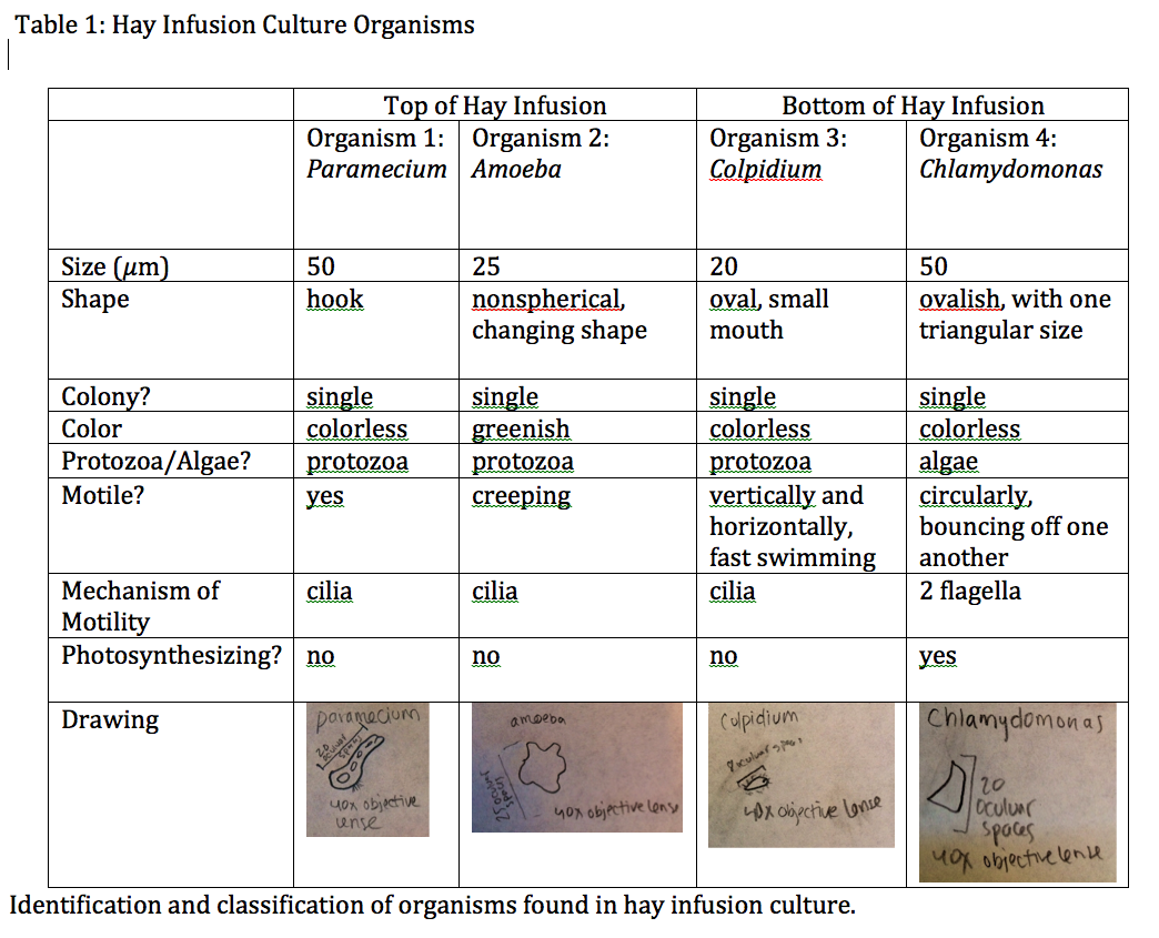 1. Collect Hay Infusion Culture and make initial observations 2. Prepare two wet mounts from the top and bottom of the culture respectively 3. Observe the four samples under the compound microscope and use the dichotomous key to identify four organisms
