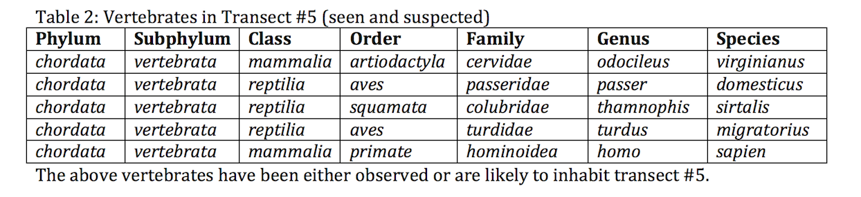 1. Contemplate vertebrates that might live in your transect (Bentley et al. 2014)