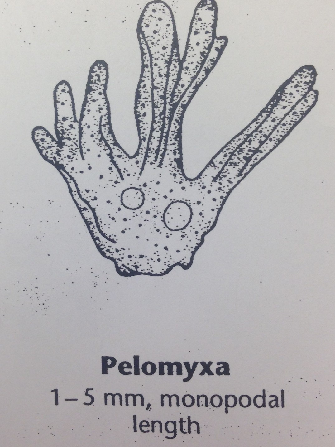 • Pelomyxa: 1-5 milimeters, creeps with pseudopods, shape changes, colorless, protest, non-photosynthesizing