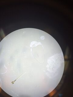 Conclusion and Future Direction: In conclusion, two out of the six organisms were undergoing photosynthesis due to their green appearance. I believe this is because the last three organisms were collected from the top of the culture where the mold was growing. This could mean organisms that thrive close to the top require more sunlight to survive. Each organism meets the criteria of life by having cells that are organized, uses energy, can reproduce, and interacts/adapts with its environment. The future direction would be to let this hay infusion culture grow for two months and observe what happens. I predict that the organism that uses photosynthesis will thrive and the ones that don’t will die off. This is because the food source of dried milk will be depleted and the ones who can make their own food will survive.