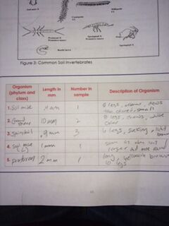 Methods: In procedure 2, invertebrates were observed and classified with a dichotomous key. In procedure 3, Invertebrates were collect from the Berlese Funnel and were observed through a dissection microscope. Small characteristics were indentified and were used to classify specific organisms.