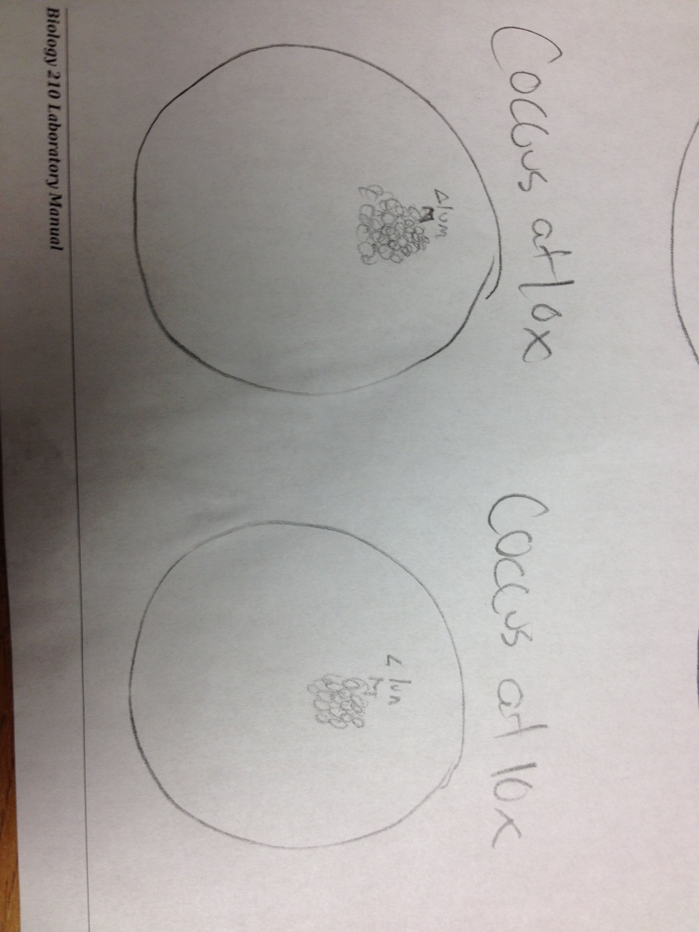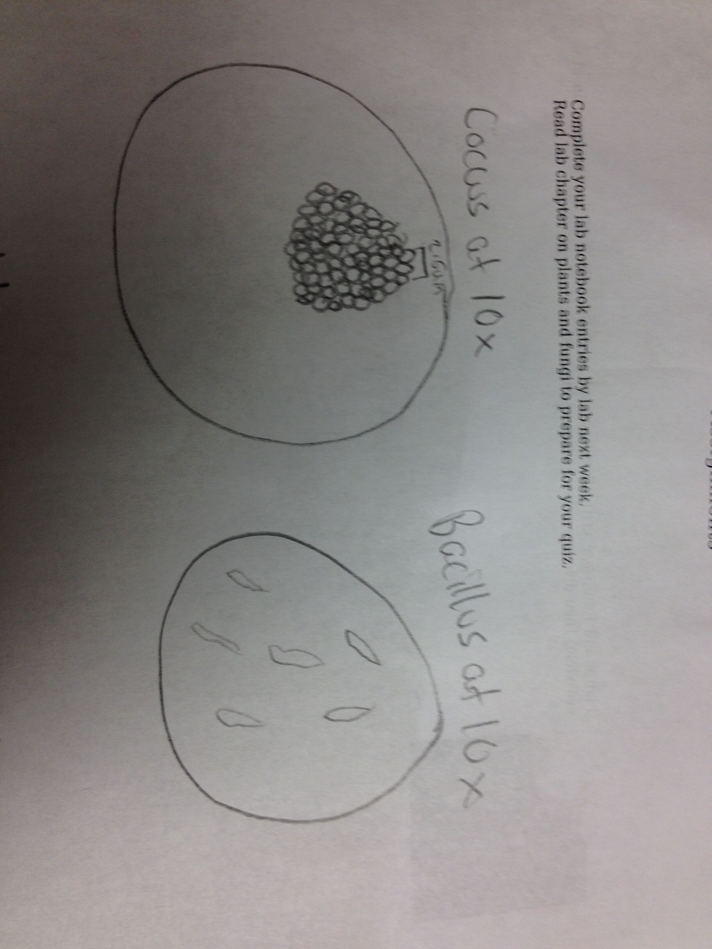 Because we had such difficulty finding the bacteria, we didn't have a lot of time to draw the bacteria under the microscope. Here are four pictures that show the bacteria we did find under the microscope.