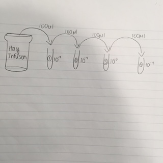 The Hay Infusion Culture changed from last week. The smell was reminiscent of sewage and only about ½ of the water was present. Additionally, most of the objects and the film on the surface had shrunk. The culture was much clearer than it was last week and soil collected on the bottom.