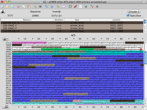 - This allows me to instantly see where all of the primers I own bind to a DNA sequence for a given project I am working on.  It also allows me to share these primers very easily; by sharing the file it outputs allows my lab mates to instantly see if I have any primers that can be used in their project.  It has been very handy for them!