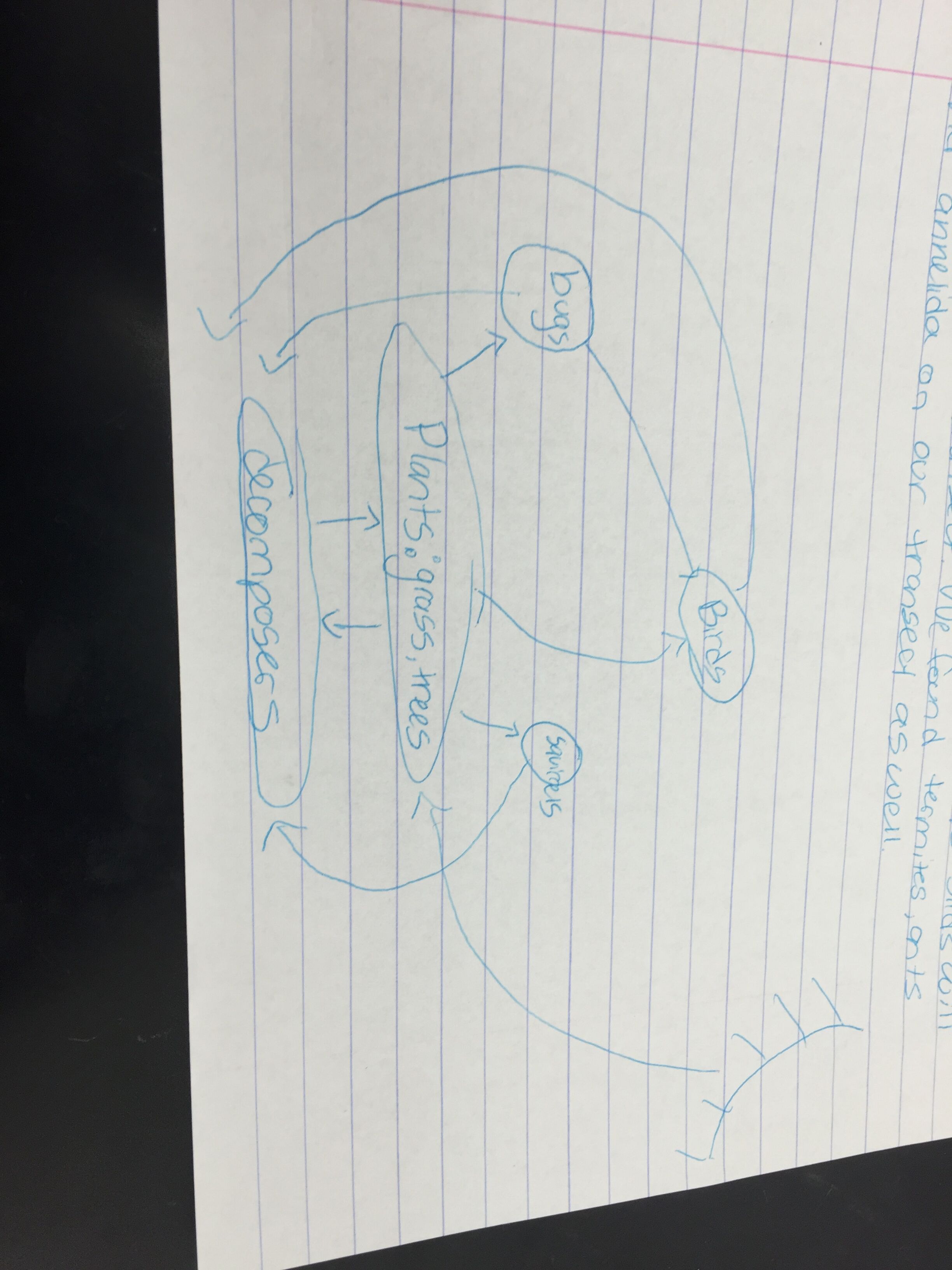 - Trophic Levels- All of the animals found on our transect would be in lower trophic levels, none of them eat meat, all eat either plants, bugs or anything they can scavenge.