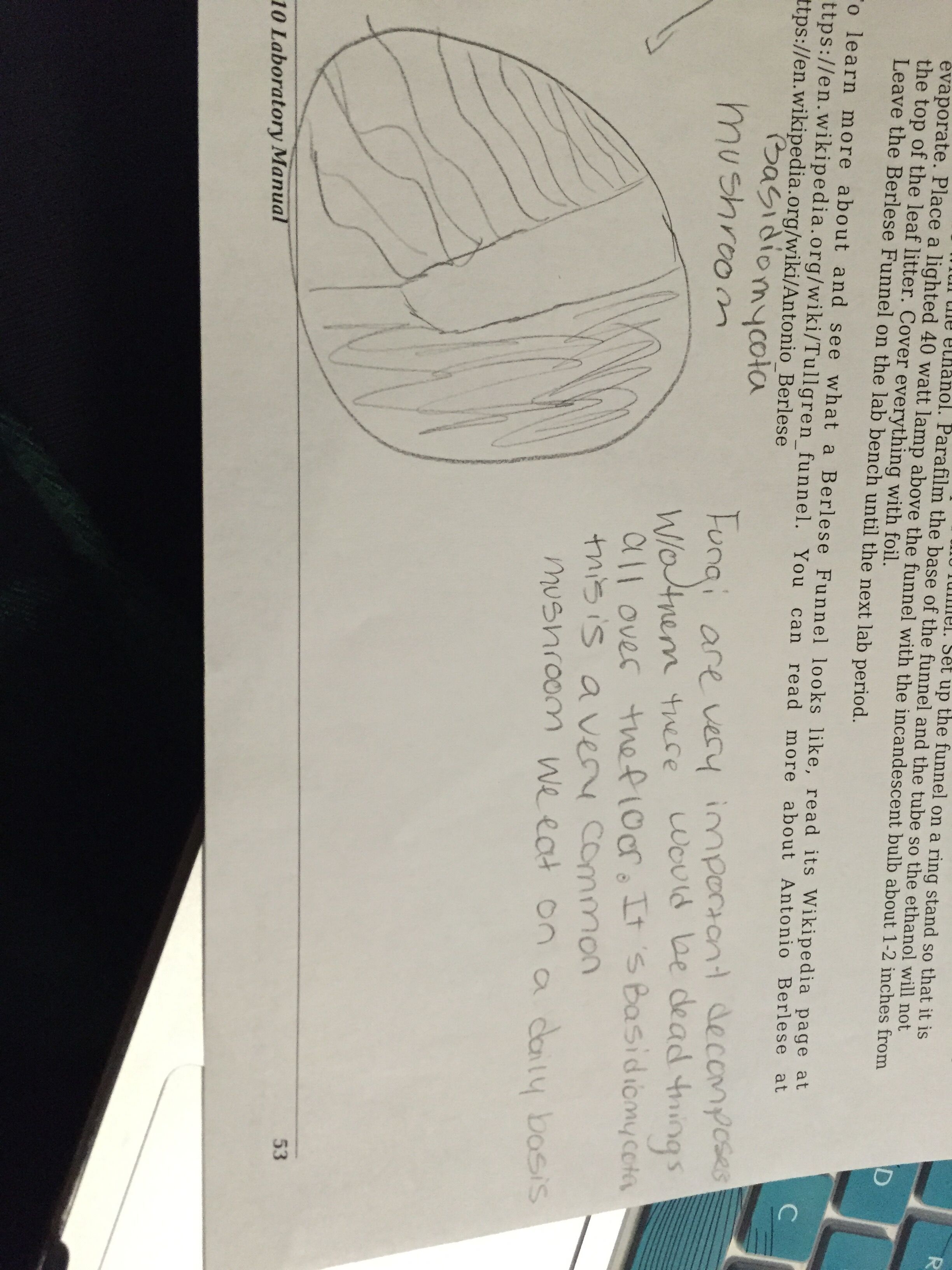 - We then set up a Berlese Funnel to collect invertebrates for next week's lab.