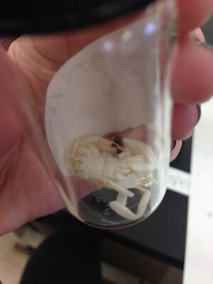 Then, my group members and I looked at the contents of our Berlese funnel under a dissecting microscope. From this point, we could see two creatures in the bottom half of our Berlese funnel. We could not see any more than those, though, so I took a sample of the liquid in the petri dish and put it in a depression slide to look at it under a more powerful microscope. Now, I could see a third, smaller creature. The following were what we saw in our Berlese funnel.