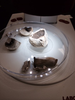 The materials for this lab included five plant species collected from the individual transect, cross sections made from those plants, microscopes for the observation of the plants and fungi species, and collected "leaf litter" too make funnels in order to trap invertebrates. The lab also called for charts of monocot and ditto characteristics in order to further describe the plant identifications.