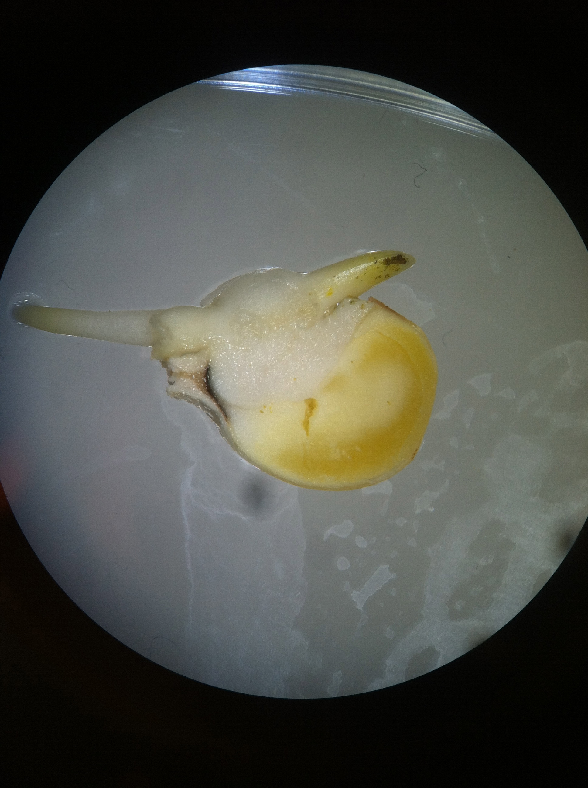 When examined, the corn was found to be monocot, having only one cotyledon, while the bean was a dicot, having two cotyledons.